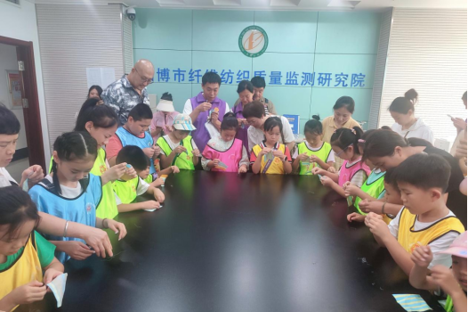 淄博市纤监院自2023年入围淄博市第一批儿童友好实践基地以后,依托检测平台建设,始终坚持以关心关爱儿童健康成长为服务理念,引导青少年参与到特色志愿社会实践中,鼓励儿童在实践中拓展思维,学习掌握纺织服装科普知识,通过参观大型设备实验室、物理性能实验室等多个实验室,亲自体验校服前处理、显微镜观察校服面料成分微观形态、观看校服面料的摩擦色牢度实验等活动,进一步了解学生校服知识,真实感受校服背后的质量安全重要意义。